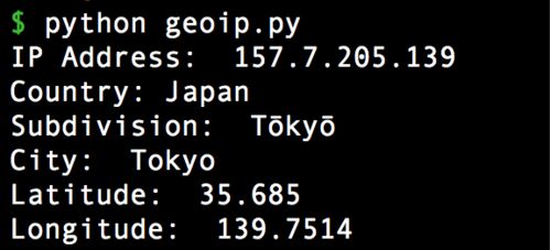 前のエントリーでは、PHPでGeoIPを使ってIPアドレスを解析した。 GeoIP2を使ってIPアドレスの情報を取得 (PHP編) - Tahoo!! 本エントリーでは、Pythonを使ったやり方をメモ。と、言ってもほぼPHPと同じw
